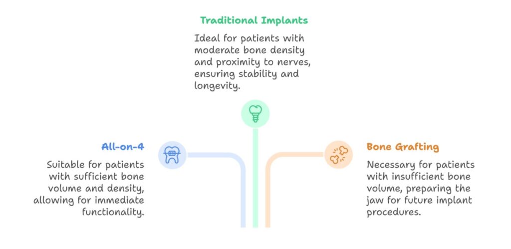 This technique uses strategically angled implants placed in areas of naturally stronger bone, often avoiding the need for grafting altogether.